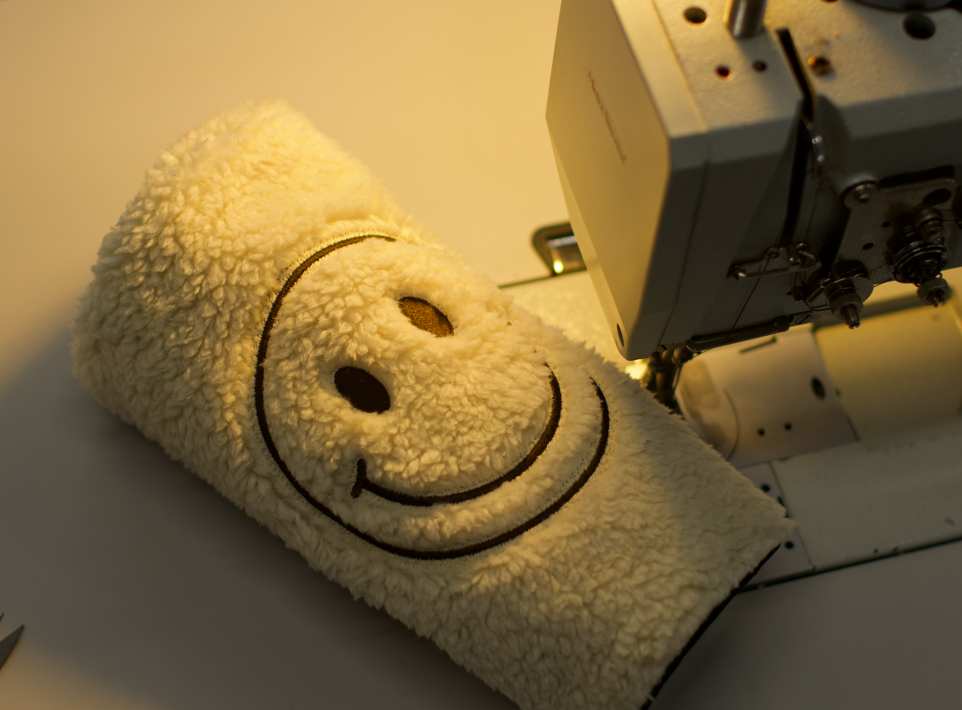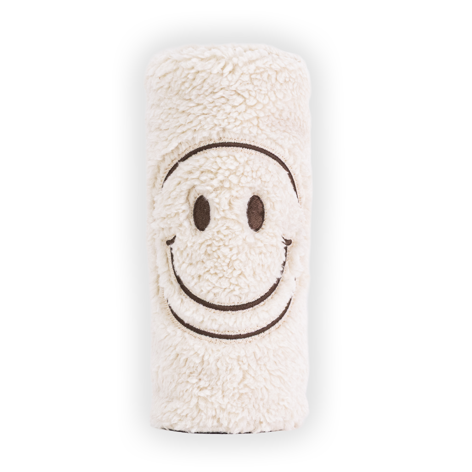- Embroidered smiley and “Go To Your Happy Place”